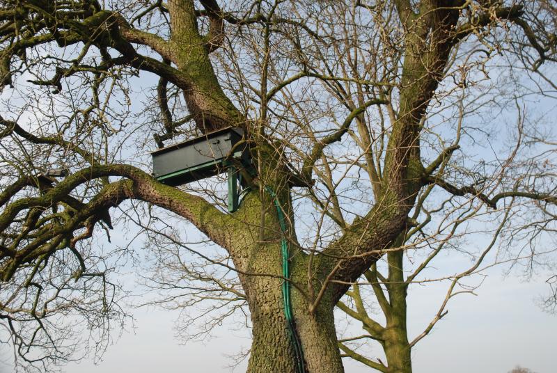 De camera’s hangen op een erf in het buitengebied van Winterswijk. De nestkast hangt in een oude perenboom die samen met wat andere fruitbomen in een weitje staat waar ook een aantal kippen en een haan rondscharrelen. De haan laat – zoals het een toegewijde betaamt – bij het krieken van de dag (en op elk ander moment dat meneer het goeddunkt) luidkeels horen dat hij in charge is. Het hoort erbij zullen we maar zeggen. Volgens de echte baas van het spul was de braadpan de enige mogelijkheid hem uit te zeten. Voorlopig maar even niet.
