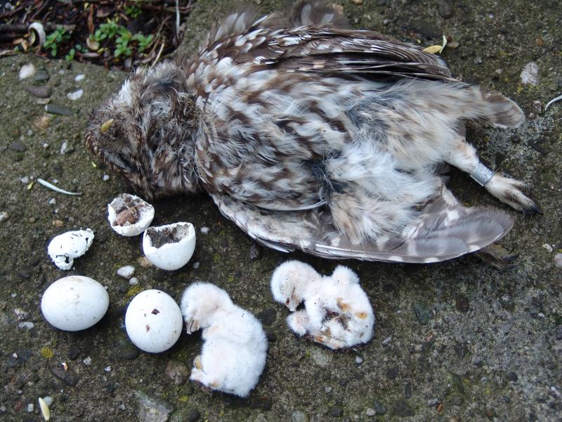 Hoe anders is het beeld bij de gezenderde Steenuilen!! In maar liefst 74% van de gevallen was de doodsoorzaak predatie, menselijk handelen tekende voor slechts 10%.